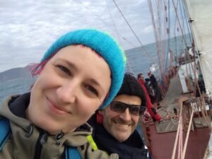 Aga & Bernd, at sea, during the Experiential Educators Europe Tall Ship Special Edition 2019 voyage.